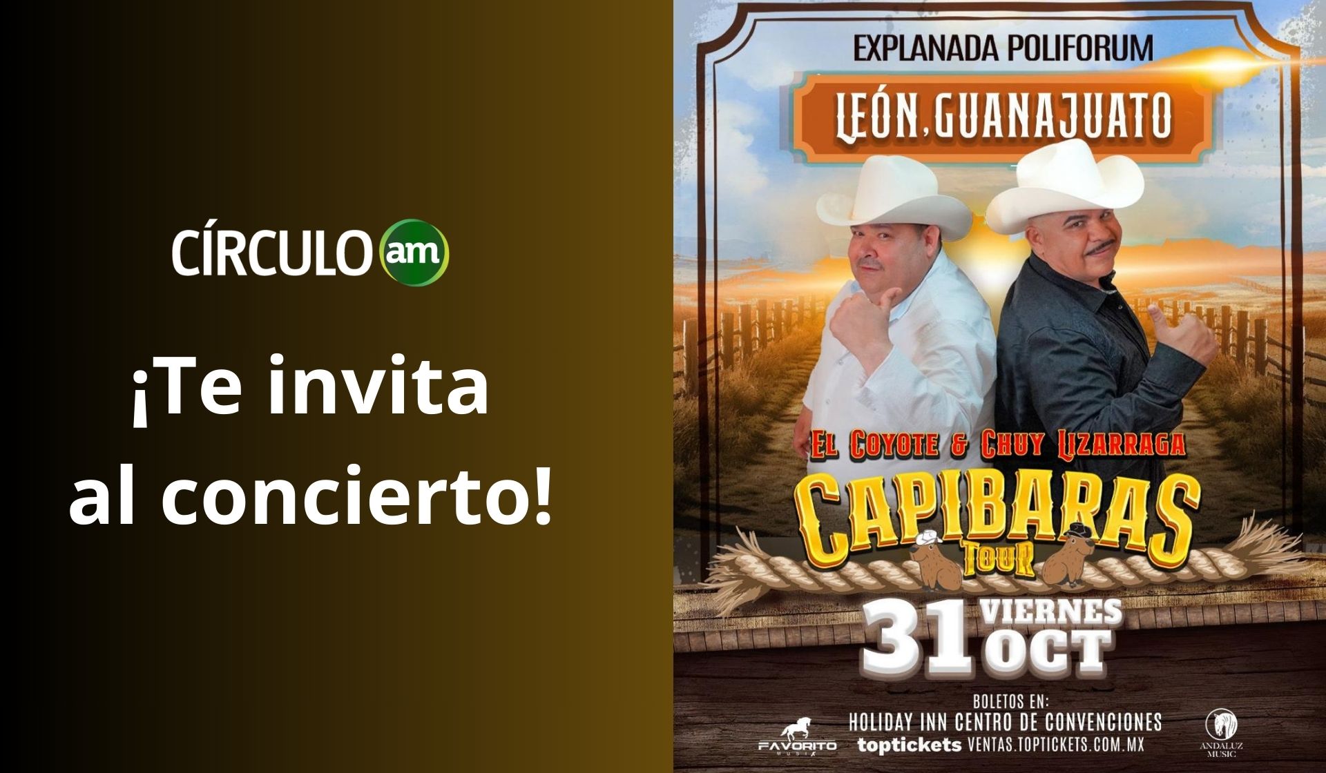 Una de las giras gruperas más exitosas del año: Capibaras Tour, de Chuy Lizárraga y El Coyote, se presentará en la Explanada Poliforum el próximo 31 de octubre.